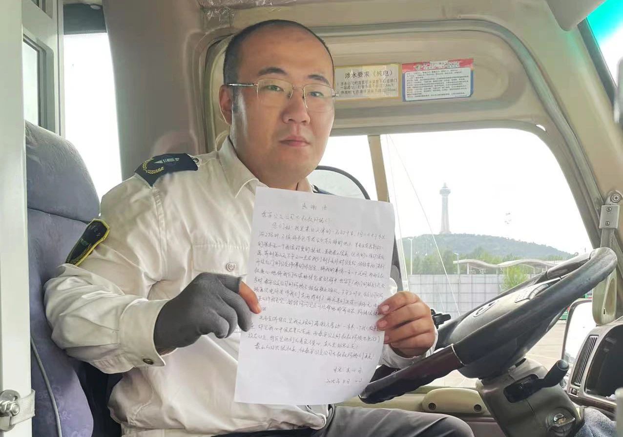 耐心安撫好孩子后,李樂軍引導(dǎo)孩子將電話交給家長,順利與王先生取得聯(lián)系。并在恒大城公交站將手機(jī)交給王先生。王先生從李樂軍手中接過手機(jī),激動得連聲道謝。為了表達(dá)這份感激,他特意寫下感謝信,親自送到第一分公司。