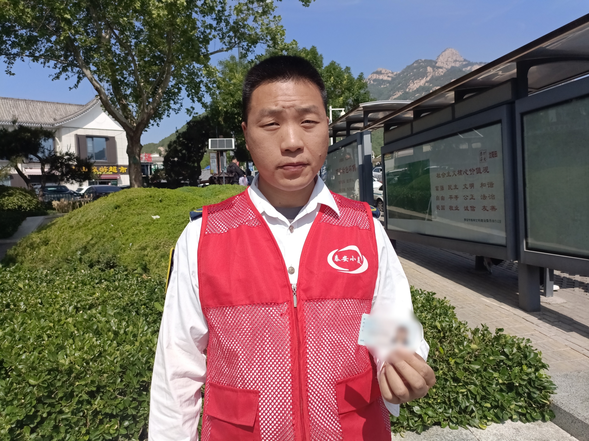 “您好,這是您們丟的身份證嗎?”五一假期第一天,在天外村公交站點志愿服務(wù)的泰安公交志愿者李偉濤撿到一張外地游客的身份證,在他現(xiàn)場尋找失主未果后,立即撥打110求助警察幫助尋找,最終丟失的證件交到失主手里。